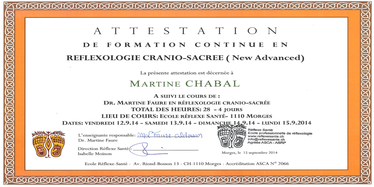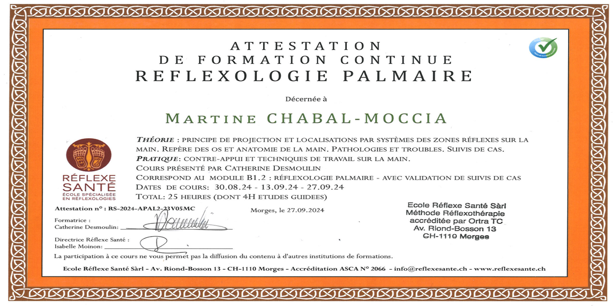 Diplôme de Réflexothérapeute - Filière OrTraTC